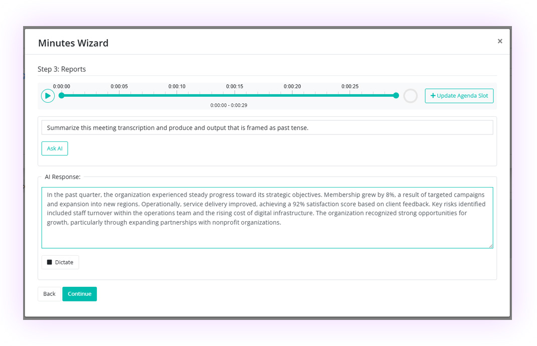Concise, accurate summaries of your board pack. Understand 100+ page reports in minutes.
